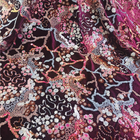 刺繍ベルベット刺繍ベルベット,エレガントなウェディングレース用ソフト高級ベルベットスパンコール生地