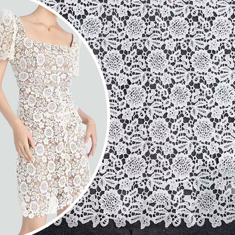 Кружевная ткань, молочный шелк, полная ширина, Водорастворимая Вышивка, кружевной Цветочный вырез для платья